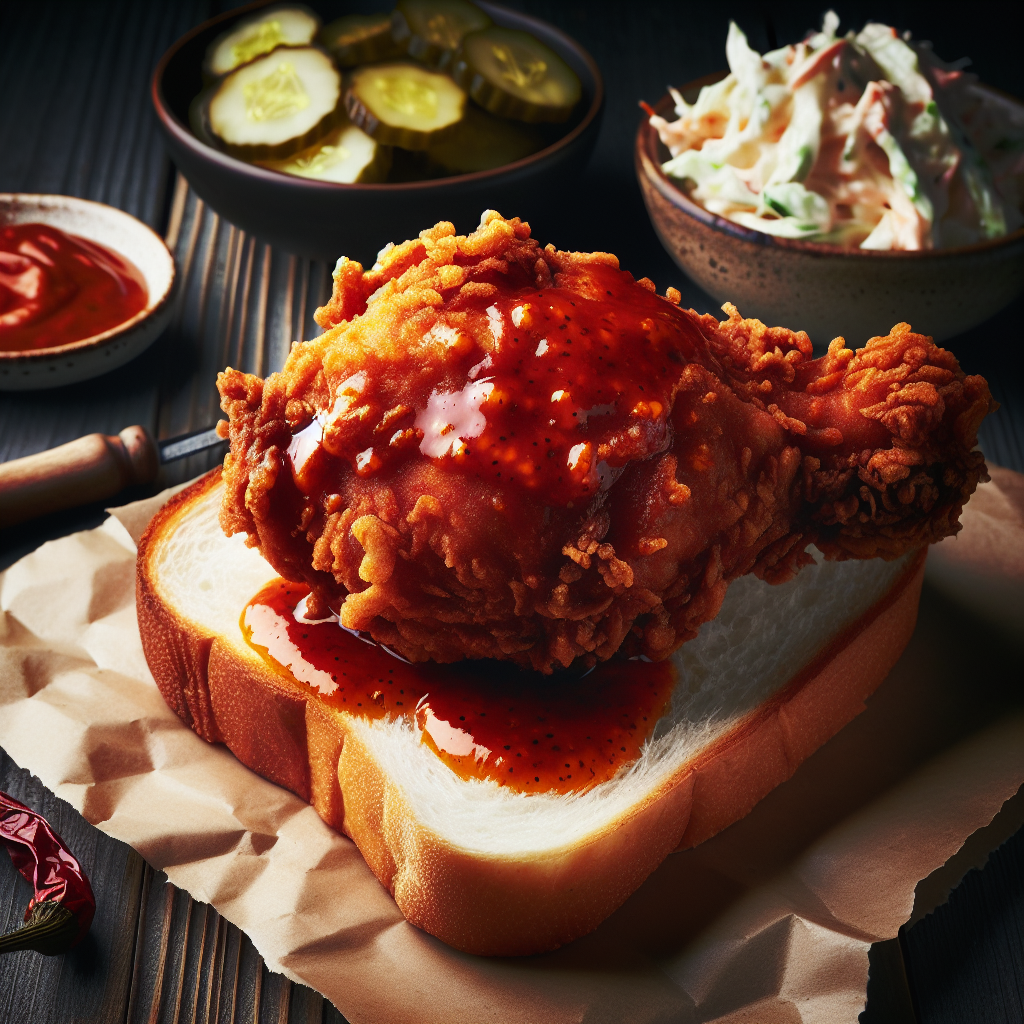 This Nashville Hot Chicken recipe delivers the perfect combination of crispy fried chicken and fiery hotness. Slathered in a spiced cayenne butter sauce, each bite is both a crunchy delight and a spicy adventure that captures the essence of this Southern classic.